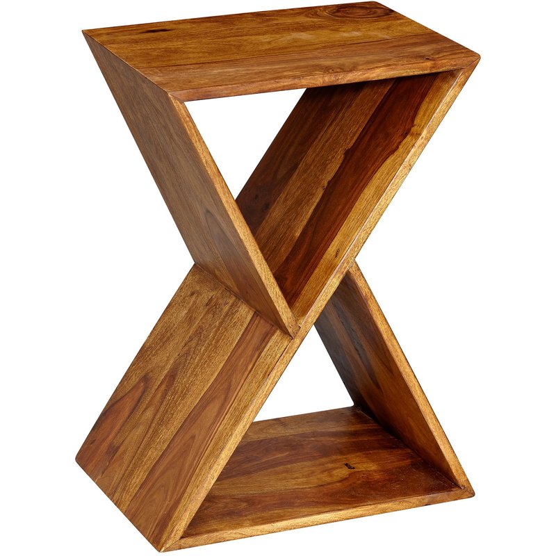 Design • Extravaganter Beistelltisch in modernem Design • Kleiner Wohnzimmertisch in X-Form mit zwei Ablageflächen • Anmutige Fronten durch die schöne Maserung des Sheeshamholzes