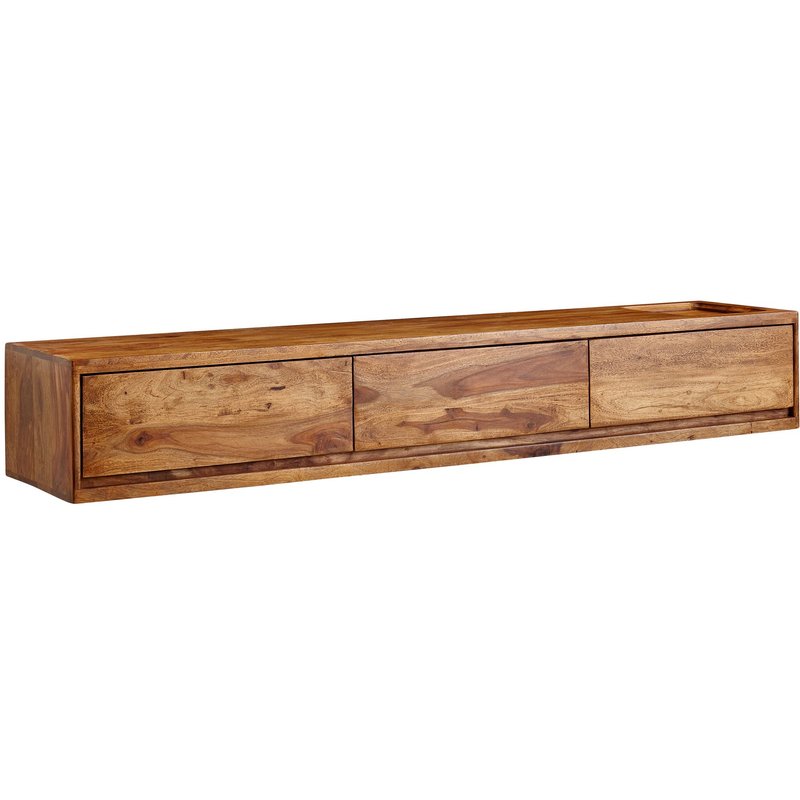 FineBuy Lowboard Hängend Sheesham Massivholz 160x25x35 cm TV-Schrank Braun, Design Fernsehtisch mit Stauraum, Fernsehschrank Wand Modern, TV-Kommode Fernsehkommode zum Aufhängen