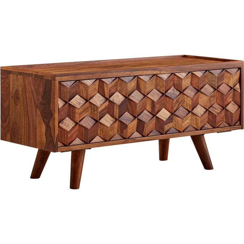 FineBuy Lowboard Sheesham Massivholz 90 cm - Kommode mit Klapptür - TV Schrank Sideboard - Fernsehschrank - Fernsehtisch - Fernsehkommode Wohnzimmerschrank