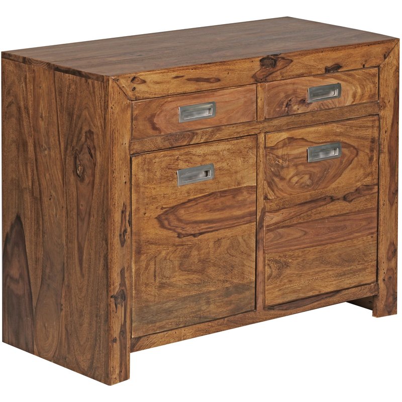 Massivholz Sideboard FineBuy 90cm Sheesham Kommode mit 2 Türen & 2 Schubladen