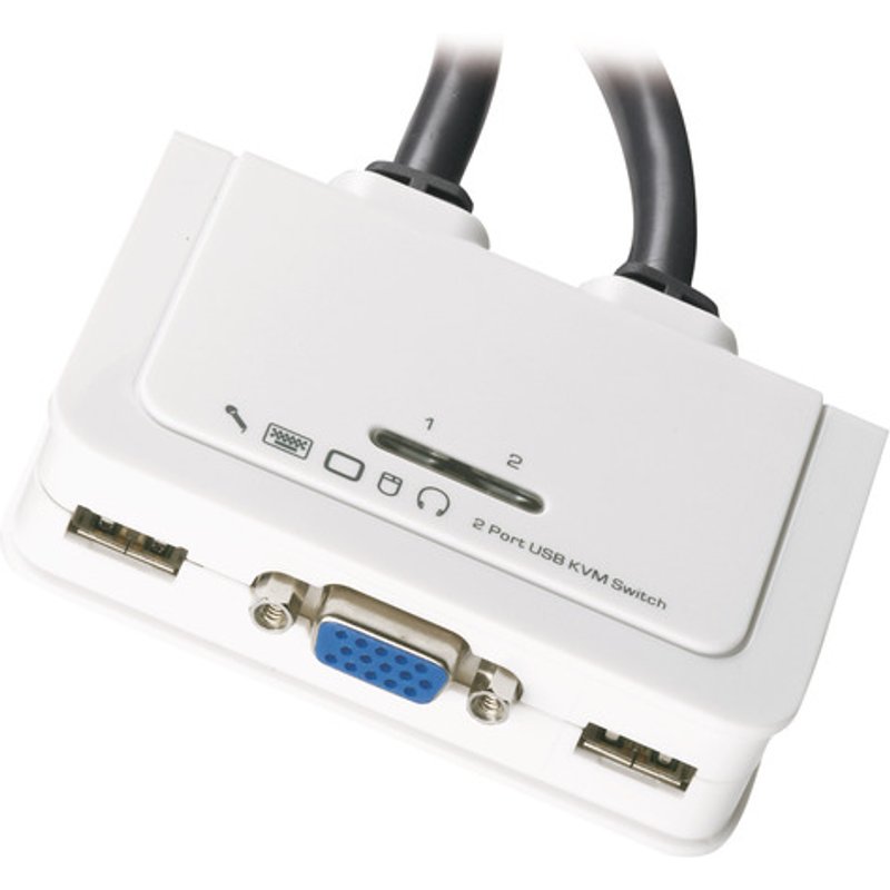 Steuert 2 VGA-USB PCs mit voller Audio UnterstützungVideo Auflösung: bis zu 2048 × 1536 @60Hz, DDC2BAnschluss zweier zusätzlicher USB2.0 Geräte möglichUmschalten per Quick Switch ButtonRemote Taster zur Port AuswahlAuto Scan ModusUnterstützt Windows und Mac VersionenKein Netzteil notwendigLEDs zur Statusanzeige - SALE Multimedia 2-Port KVM VGA-USB-Audio mit Kabelsätzen - 2-Port KVM VGA-USB-Audio mit Kabelsätzen -- 2x0,9 m