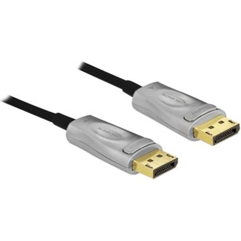 DELOCK Aktives Optisches Kabel DisplayPort 1.4 8K 15m. Dieses Kabel von Delock dient dem Anschluss von Geräten mit DisplayPort Schnittstelle, wie z. B. Bildschirmen oder Fernsehgeräten, an einen PC oder ein Notebook. Dieses aktive optische Kabel ist besonders dünn und kann Signale verlustfrei über längere Distanzen übertragen.