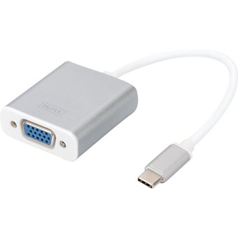 DIGITUS Grafik Adapter USB3.0 Typ C VGA Full HD Aluminium Gehäuse 20cm Kabel Chipset VL100+IT6513 weiss. Mit dem USB Grafik Adapter können Sie Ihren Laptop mit dem universellen USB Typ C Anschluss bequem über VGA um einen weiteren Monitor mit voller Full HD Auflösung erweitern. Dank der einfachen Plug and Play Konfiguration müssen Sie keine Treiber installieren oder Systemeinstellungen vornehmen.