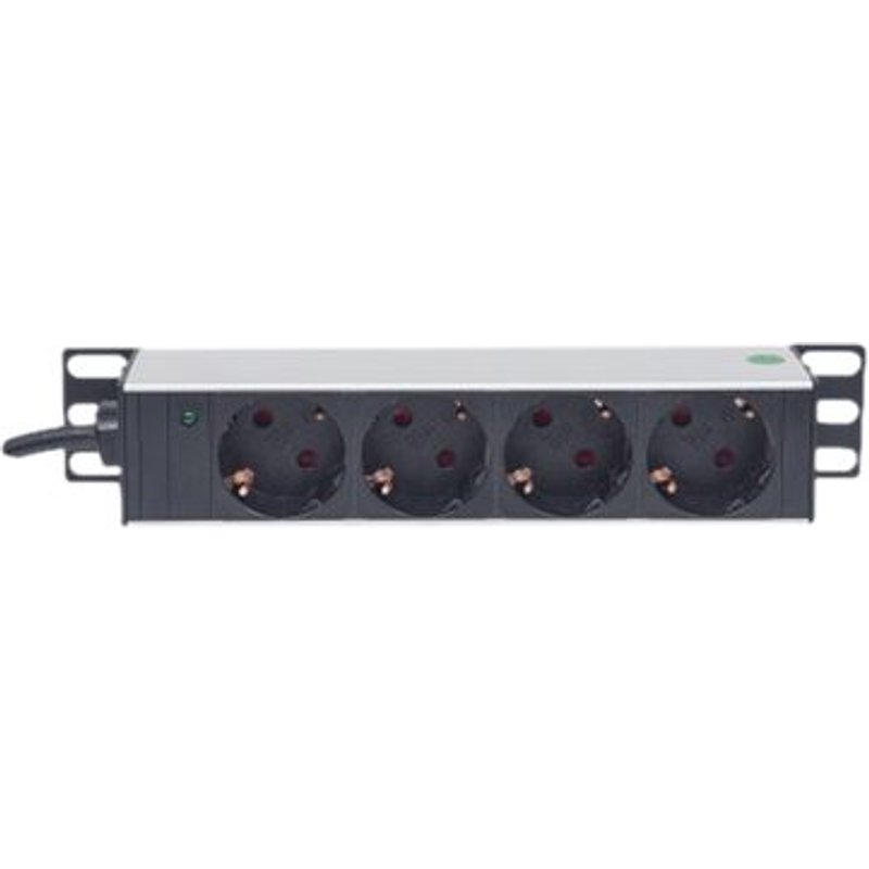 INTELLINET 25,4cm 10Zoll Steckdosenleiste 4-fach SCHUKO Power-LED ohne Ueberspannungsschutz 1,8m Stromkabel 1 HE. Diese hochwertige Intellinet Steckdosenleiste aus robustem Aluminium lässt sich horizontal in 10'' Schränken und Wandverteilern montieren.