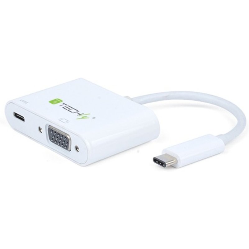 Dieser Konverter ermöglicht es, einen zusätzlichen Monitor mit VGA anzuschließen, um Videos oder Präsentationen zu übertragen. Er ist auch mit einer USB Typ-C Buchse ausgestattet.