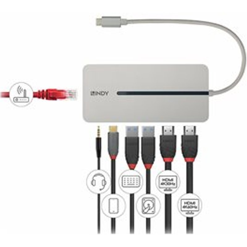 LINDY USB 3.2 Typ C Mini Dock 2x HDMI 4K. 2x 4K HDMI , PD 3.0 100W, USB 3.2 Gen 1, Gigabit Ethernet, Audio.