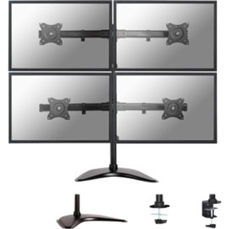 NEOMOUNTS Desk mount 10 - 27Zoll 2 screens Black Max 16kg. Die Neomounts Select Tischhalterung, das Modell NM-D335D4BLACK, ist ein Neig-, Schwenk- und drehbare Tischhalterung für vier Flachbildschirme bis 27" (69 cm). Diese Halterung ist eine gute Wahl für platzsparende Platzierung auf Schreibtischen mit einer Tischklemme, Standfuß oder Tischplattenbohrung. Neomounts Selects Neig- (90°), dreh- (360°) und schwenkbare (30°) Technologie ermöglicht es die Halterung auf jedem Betrachtungswinkel zu ändern, um von den vollen Umfang der Möglichkeiten des Flachbildschirms, zu profitieren. Die Halterung ist manuell höhenverstellbar von 0 bis 80 Zentimetern. Verstecken Sie Ihre Kabel um den Arbeitsplatz schön und ordentlich zu halten. Durch eine ergonomische Halterung können Nacken- und Rückenbeschwerden vermieden werden. Ideal für den Einsatz in Büros und auf Theken oder in einem Empfangsbereich. Neomounts Select NM-D335D4BLACK hat einen Drehpunkt und eignet sich für Bildschirme bis 27" (69 cm). Die Tragfähigkeit dieses Produkts ist für vier Bildschirme je 8 kg. Die Tischhalterung ist geeignet für Bildschirme mit VESA 75x75 oder 100x100 mm Lochmuster. Verschiedene andere Lochmuster können, unter Verwendung von Neomounts Selects VESA Adapterplatten, abgedeckt werden.