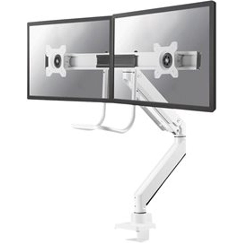 NEOMOUNTS NM-D775DXWHITE 81,28cm 32Zoll Desk Mount desk clamp/grommet. Modell NM-D775DX ist eine neig-, schwenk- und drehbare Tischhalterung mit Tischhalterungsgriff für zwei Flachbildschirme bis 32" (81 cm). Diese Halterung ist eine gute Wahl für platzsparende Platzierung auf Schreibtischen mittels einer Tischklemme oder Tischplattenbohrung. Neomounts Selects einzigartige neig- (20°), dreh- (360°) und schwenkbare (180°) Technologie ermöglicht die Anpassung an jedem Betrachtungswinkel, um im vollen Umfang von den Möglichkeiten des Flachbildschirms zu profitieren. Der Support ist einfach durch Gasfeder höhenverstellbar bis 60 Zentimetern. Der Support ist einfach in der Tiefe auf Abstand zu verstellen, von 0 bis 63 Zentimetern. Eine einzigartige Kabelführung verdeckt und führt Kabel über den Support zum Flachbildschirm. Verstecken Sie Ihre Kabel um den Arbeitsplatz schön und ordentlich zu halten. Die Halterung ist mit einem 180°-Sperr-Mechanismus ausgestattet. Neomounts Selects NM-D775DX mit Tischhalterungsgriff verfügt über drei Drehpunkte und eignet sich für Bildschirme bis 32" (81 cm). Die Tragfähigkeit dieses Produkt ist 2 bis 16 kg. Die Schreibtisch-Halterung ist geeignet für Bildschirme mit VESA Lochmuster 75x75 oder 100x100mm. Verschiedene Lochmuster können unter Verwendung Neomounts Selects VESA Adapterplatten abgedeckt werden. Durch die Verwendung eines ergonomischen flachen Schirmeinfassung verhindern Sie Nacken- und Rückenbeschwerden. Ideal für den Einsatz in Büros und auf Theken oder in einem Empfangsbereich.