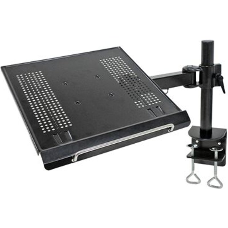NEOMOUNTS NOTEBOOK-D100 LapTop Halter Hoehe bis 27cm 10,5 Zoll Tiefe 30 bis 60cm 11,8 bis 23,5 Zoll Farbe Schwarz. Die Neomounts Notebook Trag-Arm-Tischhalterung, das Modell NOTEBOOK-D100, ist eine neig- und schwenkbare Schreibtisch-Halterung für Notebooks bis 22". Diese Halterung ist eine gute Wahl für platzsparende Positionierung auf Schreibtischen durch eine Tischklemme. Neomounts einzigartige neigbare- (30°) und schwenkbare (180°) Technologie ermöglicht es die Halterung zu jedem Betrachtungswinkel zu ändern um im vollen Umfang der Möglichkeiten des Notebooks zu profitieren. Die Halterung ist leicht höhenverstellbar 0-26 Zentimetern, und tiefeeinstellbar von 0 bis 57 Zentimeter. Eine einzigartige Kabelführung verdeckt und führt Kabel von der Halterung zum Notebook. Verstecken Sie Ihre Kabel um den Arbeitsplatz schön und ordentlich zu halten. Durch eine ergonomische Halterung können Nacken- und Rückenbeschwerden vermieden werden. Ideal für den Einsatz in Büros und auf Theken oder in einem Empfangsbereich.