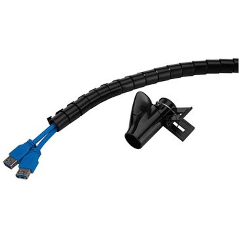 NEOMOUNTS Spiral Cable Wrap 20mm multiple cables black. Die Kabelmanagement-Hülse von Neomounts ist eine effektive Lösung für die Organisation mehrerer Kabel und bietet Platz für 1 bis 4 Kabel. Die aus flexiblem Kunststoff gefertigte Kabelhülse ist strapazierfähig und sorgt für einen aufgeräumten Arbeitsplatz. Im Lieferumfang ist ein Kabelführungsclip enthalten, mit dem Sie Ihre Kabel nahtlos organisieren können, sodass zu Hause oder im Büro für Ordnung gesorgt ist.