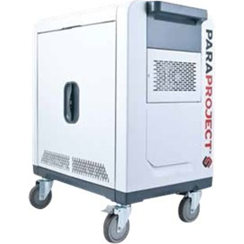 PARAT Paraproject Trolley i32 iPad für bis zu 32 Geräte mit Lightning-Kabeln. Der PARAPROJECT Trolley i32 PRO dient zur sicheren Aufbewahrung und zugleich als Ladestation für bis zu 32 iPad. Zum Laden oder Synchronisieren schiebt man die iPad einfach in die entsprechenden Slots und schließt sie mit MFI-zertifizierten Kabeln an. Der Trolley erkennt die USB Verbindung zum Host Computer und startet den Synchronisationsvorgang. Je nach Software können Nutzer diese Voreinstellungen ändern, bei Verwendung einer WIFI Umgebung ist auch die drahtlose Synchronisation möglich. Das System unterstützt den Lightning Connector. Die versenkbare und verschließbare Schwenktür spart Platz und sichert vor Diebstahl.