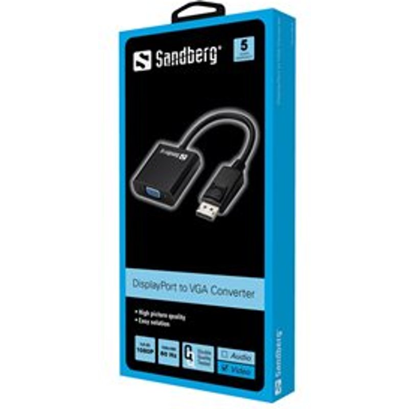 SANDBERG Adapter DisplayPort-VGA. Konvertiert DisplayPort Ausgang zu VGA Ausgang.. Beim DisplayPort handelt es sich um einen Port-Standard für digitale Audio- und Videodaten. Wenn Sie in einem Gerät, das Sie über den VGA-Eingang an Ihrem Monitor anschließen möchten, einen DisplayPort haben, dann ist dieser Adapter die Lösung für Sie!