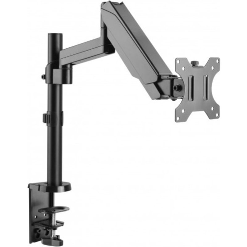 Er optimiert die Ergonomie und ermöglicht die Einstellung der Neigung, der Höhe und der Drehung, um die beste Sicht auf den Bildschirm zu ermöglichen. Eine eingebaute Gasdruckfeder ermöglicht eine weiche und flexible Einstellung des Monitors. Darüber hinaus enthält das Produkt eine schnell zu lösende VESA-Platte, die die Installation erleichtert. Das integrierte Kabelmanagement sorgt für eine geordnete Verlegung der Kabel.Eigenschaften Gasdruckfeder-Monitorarm für 17-32" Monitore Die Gasdruckfeder gleicht das Gewicht des Monitors perfekt aus Max. unterstütztes Gewicht: 8 kg VESA-kompatibel: 75x75, 100x100 Armlänge max.: 420 mm Stangenhöhe: 360 mm Auch für gekrümmte Monitore geeignet Farbe: SchwarzSpezifikationen Neigung: +/- 35° Schwenken: +/- 90° Drehung: +/- 180° Empfohlene Tischdicke: 10-80 mm Das Kabelmanagement sorgt für eine organisierte Kabelführung Das abnehmbare VESA-Plattendesign ermöglicht eine einfache Installation 360° drehbare VESA-Platte für ein besseres visuelles Erlebnis Abmessungen: 114x595x785 mmVerpackungsinhalt 1x Schreibtischhalterung mit Gasdruckfeder 1x Befestigungsmaterial 1x Bedienungsanleitung - Multimedia TV + Monitorhalterungen Monitor Halterung - Schreibtischhalterung mit Gasdruckfeder -- für LCD TV LED, 17-32", schwarz