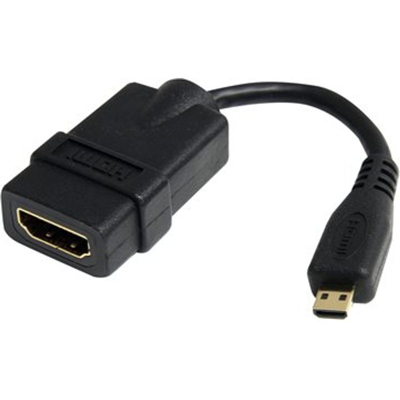 STARTECH.COM 12cm High-Speed HDMI Adapterkabel - HDMI auf Micro HDMI Kabel - Buchse/Stecker. Mit dem 12 cm langen HDMI -auf-HDMI Micro-Kabeladapter HDADFM5IN können Sie ein standardmäßiges HDMI-Stecker-auf-Stecker-Kabel zum Anschließen Ihrer mobilen Geräte (BlackBerry PlayBook , Smartphones usw.) an den meisten Videodisplays verwenden. Dank einer Standard-HDMI-Buchse (Typ A) an einem Ende und einem HDMI Micro-Steckers (Typ D) am anderen Ende können Sie diese Konvertierung ganz einfach vornehmen und praktisch überall eine Verbindung zu Computermonitoren, HDTV oder HDMI-Projektoren herstellen. Das HDMI/HDMI Micro-Kabel verfügt über hochwertige, goldbeschichtete Anschlüsse für beste Konnektivität und wird mit der lebenslangen StarTech.com-Garantie geliefert.
