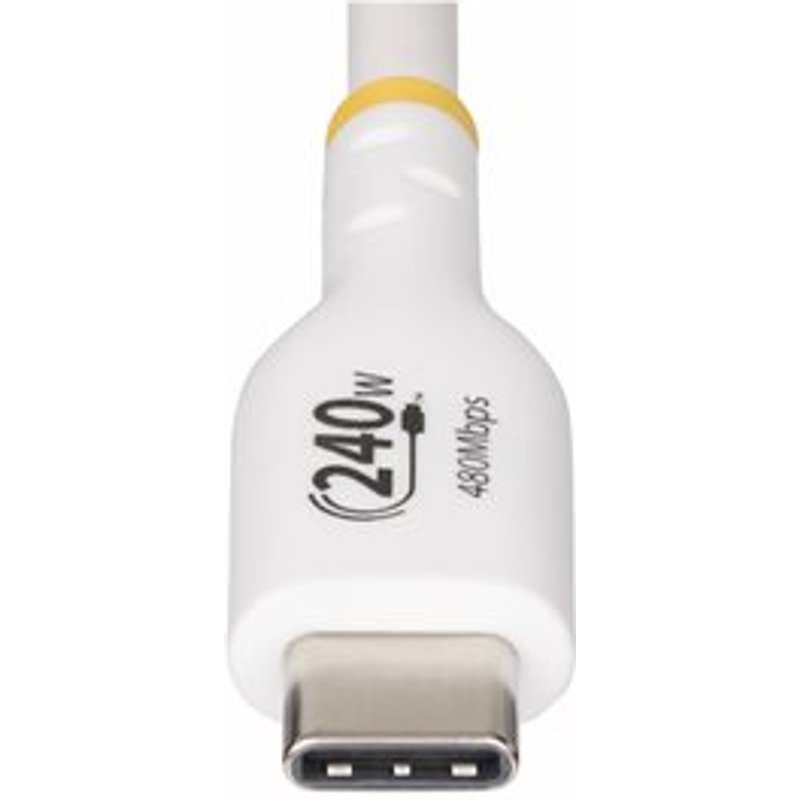 STARTECH.COM 1m Weisses USB-C Ladekabel USB-IF zertifiziert USB C Schnellladekabel 240W PD EPR USB C 2.0 Laptop-Ladekabel. Laden Sie leistungsstarke USB-C Geräte mit bis zu 240W Extended Power Range (EPR) Verbinden Sie mit diesem USB-C-Ladekabel ein Ladegerät mit einem USB Power Delivery (PD) 3.1-fähigen Gerät. Das USB-C-Ladekabel liefert bis zu 240 W USB-C Extended Power Range (EPR) Power Delivery und 5A Ausgangsleistung für schnelles Laden. Es unterstützt USB 2.0 (480Mbps) für die allgemeine Dateiübertragung. Hochwertige Konstruktion Das USB-C EPR-Ladekabel wurde für den intensiven Gebrauch entwickelt und verfügt über einen robusten TPE-Außenmantel für erhöhte Verschleißfestigkeit. Die robusten, vernickelten Stecker sind für mehr als 10.000 Einsteckzyklen ausgelegt, was seine Beständigkeit und Langlebigkeit erhöht. Mobile Geräte unterwegs aufladen Laden Sie ein USB-C-Gerät mit einem USB-C-Wandladegerät, Autoladegerät oder einer Powerbank auf. Das 1 m lange USB Typ-C Kabel ist die ideale Länge für den Schreibtisch und mobile Arbeitsplätze, Pendler, den Einsatz im Auto oder um das Durcheinander bei der Synchronisierung mit einem USB-C Laptop zu reduzieren. Laptop Aufladen Mit einer Ausgangsleistung von bis zu 5A unterstützt das USB-C-Ladekabel bis zu 240 W Power Delivery zum Aufladen eines USB-C-Laptops oder zum Schnellladen eines Tablets oder Smartphones. Verbinden ein USB-C Laptop mit einem USB-C Wandladegerät.