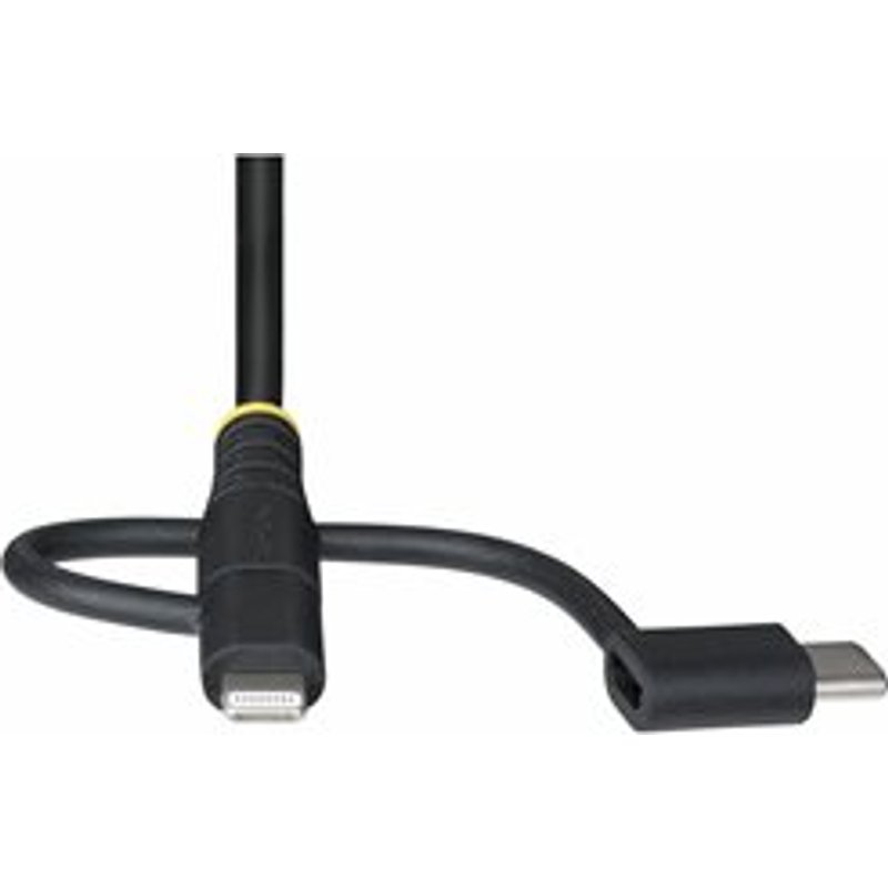 STARTECH.COM 1m Robustes USB Multi Ladekabel 3 in 1 USB zu USB-C Micro Lightning Apple Mfi Zertif. Handy Schnellladekabel. Schließen Sie Ihr Apple Lightning-, USB-C- oder Micro-USB-Gerät mit diesem robusten 3-in-1-Kabel an, das für den häufigen Gebrauch entwickelt wurde Dieses USB-Multi-Ladekabel ist eine Ein-Kabel-Lösung zum bequemen Aufladen Ihrer Apple Lightning-, USB-C- oder Micro-USB-Geräte. 3-in-1 USB-Ladekabel Halten Sie dieses USB zu Micro-USB, USB-C oder Lightning Kabel bereit und vermeiden Sie es, mehrere Ladekabel mit sich zu tragen. Das 3-in-1 Ladekabel macht es einfach, zwischen verschiedenen tragbaren Geräten zu wechseln. Das Kabel kann nur ein Gerät auf einmal laden. Laden Sie Ihre Geräte über ein USB-Wandladegerät, ein Autoladegerät oder eine Powerbank auf. Die Stecker sind kompatibel mit mehreren USB-Geräten und lassen sich schnell einsetzen. Robustes Design Das robuste Design des Kabels gewährleistet optimalen Schutz vor Verschleiß durch häufigen täglichen Gebrauch. Der flexible TPE-Mantel absorbiert die Belastung durch wiederholtes Biegen, und die Aramid-verstärkte Konstruktion erhöht die Zugfestigkeit für eine lange Lebensdauer. Benutzerfreundlich Um ein USB-C oder Lightning Mobilgerät aufzuladen oder zu synchronisieren, schließen Sie einfach den entsprechenden Stecker an den Micro-USB Anschluss an und stecken Sie ihn in Ihr Gerät. Um ein Micro-USB Gerät aufzuladen oder zu synchronisieren, stecken Sie einfach den mittleren Stecker des Kabels in Ihr Mobilgerät. RLTCUB1MBK ist Apple MFi-zertifiziert und garantiert mit Apple Lightning-fähigen Geräten kompatibel.