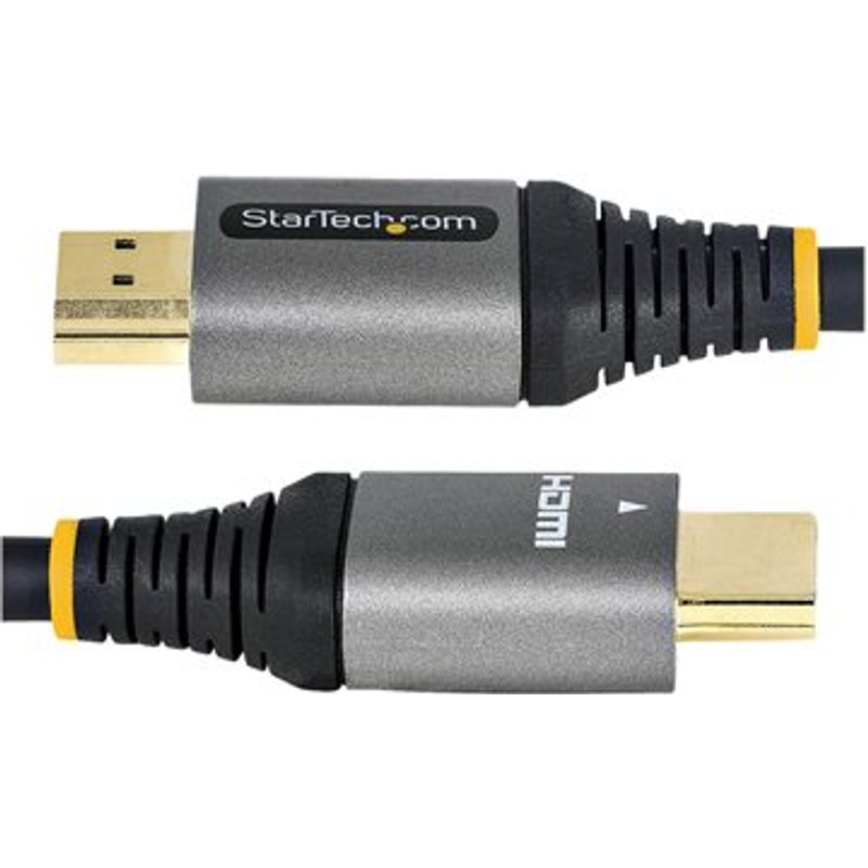 STARTECH.COM 2m Ultra High Speed HDMI Cable - 8K 60Hz - Certified HDMI Cable - HDMI 2.1 - 30 AWG. Zertifiziertes Ultra High Speed HDMI 2.1 - 8K 60Hz - 1 m Dieses 2 m zertifizierte Ultra High Speed HDMI 2.1-Kabel erfüllt die täglichen Anforderungen beim Anschluss Ihrer HDMI-Geräte. Dieses robuste Kabel ist auf die Anforderungen von Business- und Heimanwendern ausgelegt und hält nachweislich anspruchsvollen Verschleißbedingungen stand. Erleben Sie HDMI 2.1 in seiner aktuellsten Form Dieses leistungsstarke 8K-Kabel unterstützt Auflösungen von bis zu 8K bei 60 Hz (7680 x 4620p), 5K bei 60 Hz, 4K bei 120 Hz und Bandbreiten von bis zu 48 Gbit/s. Darüber hinaus unterstützt es HDR10+ (High Dynamic Range) und Dolby Vision für ein besseres Kontrastverhältnis und lebendigere Farben. Außerdem verfügt eARC (Enhanced Audio Return Channel) über bis zu 32 unkomprimierte 5.1 und 7.1 digitale Audiokanäle zur Unterstützung von DTS-HD Master Audio , DTS:X , Dolby TrueHD und Dolby Atmos für hochwertigen Sound. Das neueste HDCP 2.3 verschlüsselt und sichert Ihre Video- und Audioinhalte. Mit höheren Auflösungen, höheren Geschwindigkeiten, schärferen Bildern und kristallklaren Audioausgaben erhalten Sie ein besseres Video-Erlebnis. Das Kabel bietet garantiert die beste aktuell verfügbare HDMI-8K-Leistung. Es ist perfekt für den Aufbau des ultimativen Heimkinos oder für lebensechten Digital Signage geeignet. Dieses Kabel funktioniert mit allen 8K-fähigen Geräten und ist auch mit früheren HDMI-Spezifikationen abwärtskompatibel. Hervorragende Verbindungen durch Ultra High Speed-Zertifizierung Das Kabel wurde strengen Konformitätsprüfungen unterzogen und von einem autorisierten HDMI-Testcenter zertifiziert, sodass es garantiert alle angegebenen Funktionen für hohe Bandbreiten unterstützt. Außerdem wurde auch ein Störausstrahlungs-Test durchgeführt, um sicherzustellen, dass Störungen drahtloser Signale minimiert werden. Hauptmerkmale des Kabels- Aluminium-Mylar-Folie Abschirmung mit Geflecht verbessert den EMI-Schutz- Langlebige, flexible TPE-Ummantelung Zugentlastung (TPE ist ungiftig] halogenfrei für Umweltverträglichkeit)- Isolierte Leiter reduzieren die Reibung und bieten mehr Flexibilität. Hauptmerkmale des Steckverbinders- Die Untergerüstabschirmung aus Aluminiumdruckguss verbessert die Signalintegrität und verhindert eine Signalverschlechterung- Korrosionsfreie, vergoldete Steckverbinder sorgen für eine hochwertige Videoqualität und eine verbesserte Zuverlässigkeit- Hält, durch Tests nachgewiesen, mehr als 10.000 Einsätzen stand.