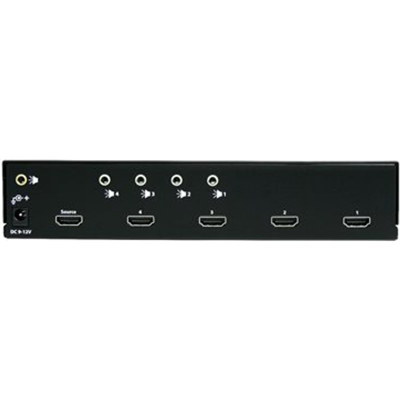 STARTECH.COM 4 Port High-Speed-HDMI Video Splitter mit Audio bis 15m- HDTV 1080p - 1920x1200 - 1 x HDMI (Buchse) 4 x HDMI (Buchs. Splitten Sie ein HDMI -Audio und Videosignal auf vier Displays gleichzeitig auf. Mit dem 4-Port-Hochgeschwindigkeits-HDMI -Video-Splitter ST124HDMI2 mit Audio können Sie eine einzige HDMI-Quelle auf bis zu 4 HDMI- oder DVI-D-fähige Displays/Empfänger ohne Beeinträchtigung der Bild- und Soundqualität ausgeben. Montage halterung werden für ordentliche, professionelle Installation mitgeliefert. Mit Unterstützung von echten HD-Videoauflösungen von bis zu 1080p ermöglicht dieser HDMI-Splitter die Positionierung von HDMI-fähigen Displays in bis zu 15,2 m Entfernung vom Splitter. Dieser vielseitige HDMI-Splitter bietet einen 3,5-mm-Audioeingang und -ausgang, über die Sie das begleitende Audiosignal per HDMI-Kabel oder einen separaten 3,5-mm-Stereo-Audio-Kanal senden können. Der Video-Splitter ST124HDMI2 ist die perfekte Ergänzung für praktisch jede Anwendung, für die Video mit hoher Qualität über HDMI-Geräte erforderlich ist.