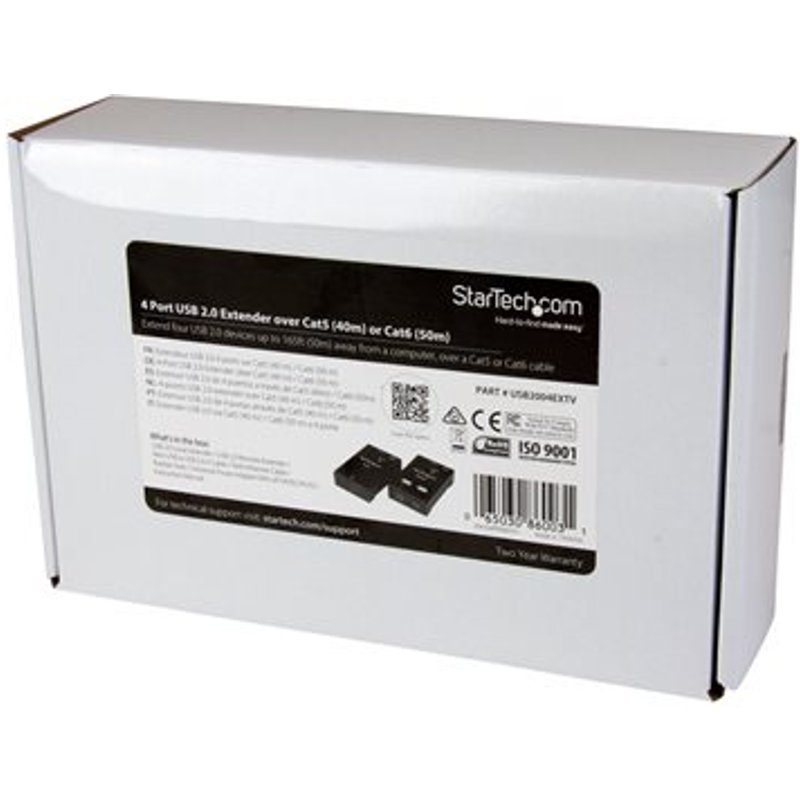 STARTECH.COM 4-Port USB 2.0-Over-Cat5-or-Cat6 Extender - 165ft (50m). Dieser 4-Port USB 2.0-Extender ist eine einfache und kostengünstige Lösung für mehr Freiraum am Arbeitsplatz. Nun können Sie die Entfernung zu Ihren USB 2.0-Geräten über ein einziges Ethernet-Kabel vergrößern, bis zu 40 m über Cat5 oder Cat6.
