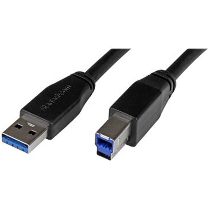 STARTECH.COM 5m Aktives USB 3.0 USB-A auf USB-B Kabel - USB A zu USB B Anschlusskabel - USB 3.1 Gen 1 (5 Gbit/s). Sie müssen sich nicht von einem USB-Kabel in Standardgröße einschränken lassen. Mit diesem aktiven-USB 3.1 Gen 1 (5 Gbit/s)-Kabel, auch als USB 3.0-Kabel bekannt, können Sie Ihre USB Type-B-Peripheriegeräte in bis zu 5 Metern Entfernung vom Computer dort aufstellen, wo Sie sie benötigen. Nun können Sie USB-Geräte wie mobile Festplatten und externe Videoaufnahmegeräte so platzieren, dass Sie Ihren Arbeitsplatz optimal nutzen können. Dieses 5 Meter lange Kabel ist mit einem integrierten Equalizer-Chip ausgestattet, der über die 3-m-Grenze von standardmäßigen USB 3.0-Kabeln hinaus eine zuverlässige Verbindung-ohne Signalverlust-bietet. Das USB3SAB5M-wird für garantierte Zuverlässigkeit mit der 2-jährigen StarTech.com-Garantie geliefert.