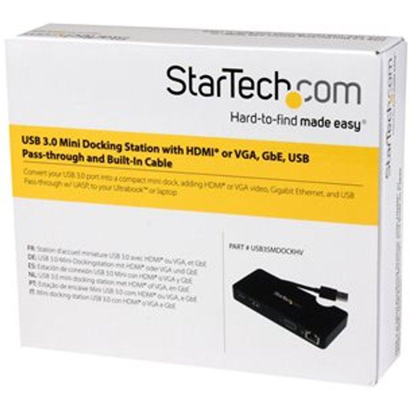 STARTECH.COM Travel Docking Station for Laptops - HDMI or VGA - USB 3.0. USB 3.0 Universal Laptop Mini Dockingstation mit HDMI oder VGA, Gigabit Ethernet, USB 3.0 (USB3SMDOCKHV).