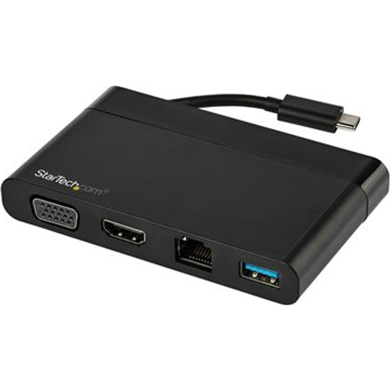 STARTECH.COM USB C Multiport Adapter mit HDMI und VGA - Mac / Windows / Chrome - 4K - 1x USB-A Port - GbE - Mobiler USB-C Adapter. Dieser USB-C Multiport Adapter mit HDMI und VGA ist ideal für mobile Mitarbeiter und ermöglicht einen flexiblen Bildschirm Ausgang. Er ist wie vier Adapter in einem, mit HDMI- oder VGA-Anschlüssen, einem Gigabit Ethernet Anschluss und einem USB 3.0 Anschluss, alles über eine Verbindung mit dem USB-C Anschluss Ihres Laptops. Außerdem verfügt er über ein verstecktes Kabel für ein besseres Kabelmanagement und einfachere Reisen. Durch die einfache Plug-and-Play Installation auf den meisten Betriebssystemen benötigt der USB-C Adapter keine zusätzlichen Treiber oder Software. Er ist das ideale Zubehör für MacBook Pro, Dell XPS, Chromebook oder andere USB-C Laptops.