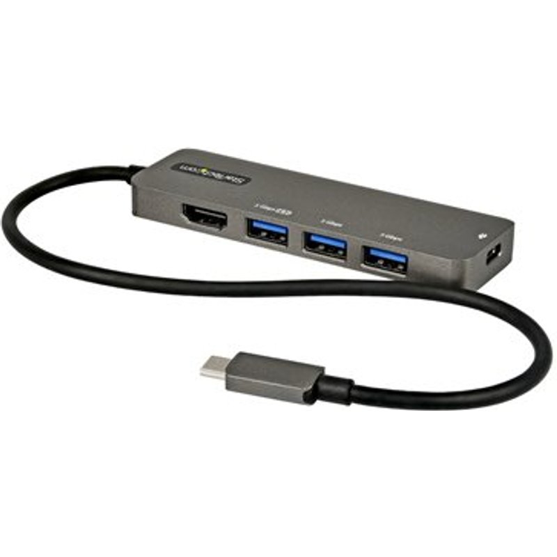 STARTECH.COM USB-C Multiport Adapter - USB-C auf HDMI 2.0b 4K 60Hz HDR10 100W PD 4-Port USB 3.0 Hub - 30cm Kabel. Dieser USB-C Multiport Adapter mit DP 1.4 unterstützt 4K 60 Hz HDMI verwandelt Ihr MacBook Pro, Dell XPS oder andere USB-C Laptops und Tablets in eine Workstation - egal, wo Sie sind. Der USB Typ-C Multiport-Adapter bietet einen 4K HDMI Videoausgang, drei USB 3.2 Typ A Anschlüsse (5 Gbit/s) der ersten Generation, einen BC 1.2 Ladeanschluss sowie einen USB Typ C Anschluss mit Unterstützung für 100 W PD-Passthrough zum USB-C oder Thunderbolt 3 Anschluss Ihres Laptops. Außerdem bietet er erweiterte Lademöglichkeiten über USB Power Delivery 3.0 und ein extra langes 30 cm Hostkabel für mehr Reichweite und mehr Flexibilität beim Einrichten.