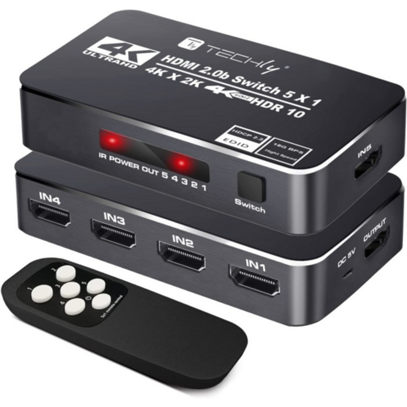 Techly 4K 5in 1out HDMI 2.0b Switch -- HDR HDCP2.2 mit Fernbedienung